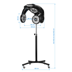 Ammattimainen, jalustalla varustettu Gabbiano GL-505S -infrazone on välttämätön laite korkeaa lämpötilaa vaativissa palveluissa, kuten värjäyksissä, vaalennuksissa, hoitokäsittelyissä, kuivauksessa tai permanenteissa. Laite lyhentää käsittelyaikaa merkittävästi, mikä mahdollistaa useamman asiakkaan palvelemisen säilyttäen samalla salongin korkean palvelun laadun.