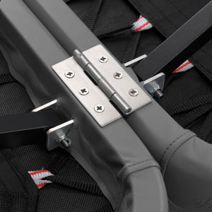 Durable 2-hinge tabletop system made of stainless steel.