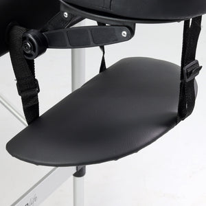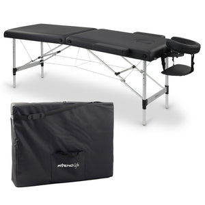 Nadia is a two-section aluminum massage table from AVENO LIFE, ideal for anyone looking for proven solutions at an economical price. A comfortable top, full equipment, and a lightweight aluminum leg structure with additional reinforcement make Nadia perfect for use in massage and physiotherapy clinics, as well as for outdoor work.