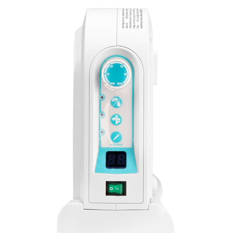 Keskusyksikön paneelissa on kaikki tarvittavat mukavuudet. On/off-kytkin palaa vihreänä (et koskaan unohda sammuttaa sitä!). Säädin mahdollistaa käsiosan nopeuden portaattoman säädön. Pyörimissuunnan vaihto vasemmalle tai oikealle. AUTO CRUISE -järjestelmä tarjoaa mahdollisuuden asettaa vakionopeus käytettäessä jalka- tai polviosaa. Itsediagnoositoiminto valvoo oikeaa toimintaa ja paikantaa viallisen alueen näyttämällä vastaavan koodin digitaalinäytöllä. Mukana toimitetaan teline käsiosalle.