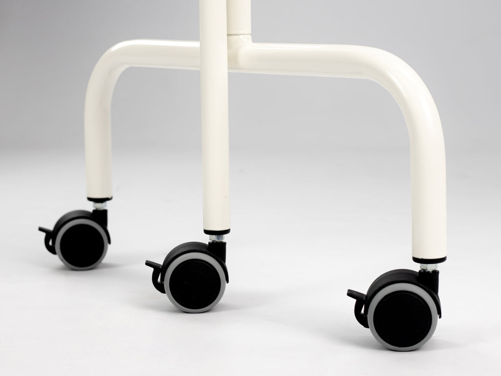Screen made of steel coated with durable white powder lacquer. Special wheels with brakes allow for easy movement and stabilization, even on slippery surfaces. The attractive colors of the screens mean that, in addition to functionality, the screens emphasize the modern character of the interiors. The white color of the screen's construction perfectly corresponds with the Evero collection of stationary massage tables.