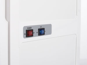 Professional towel warmer, equipped with a UV sterilization lamp and an integrated drip tray. Perfect for massage parlors, beauty salons, and spas. Its small size and minimalist white casing with rounded shapes will fit into any space, even a small one.